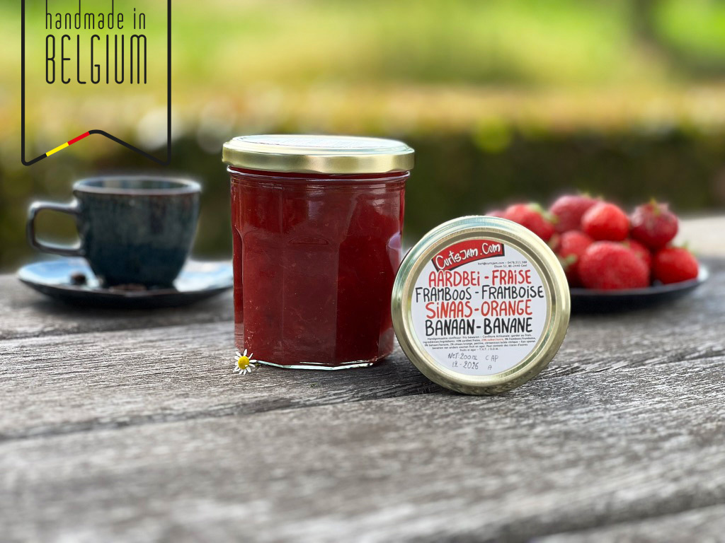 Erdbeere (49%), Zucker (29%), Himbeere (9%), Banane (9%), Orange (2%), Pektin, Zitronensäure, Agar.