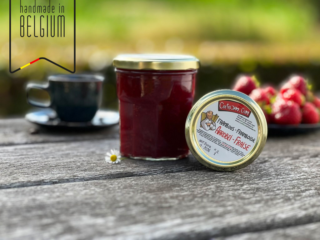 45 % Erdbeere, 23 % Himbeere, 31 % Zucker, Pektin, Zitronensäure. Kann Spuren anderer Früchte und Agar enthalten.