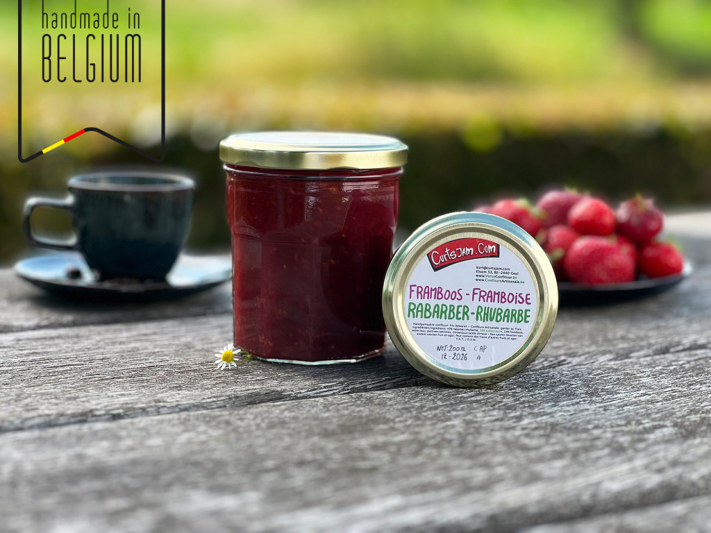 Rhabarber (43%), Zucker (33%), Himbeeren (14%), Wasser, Pektin, Zitronensäure, Agar