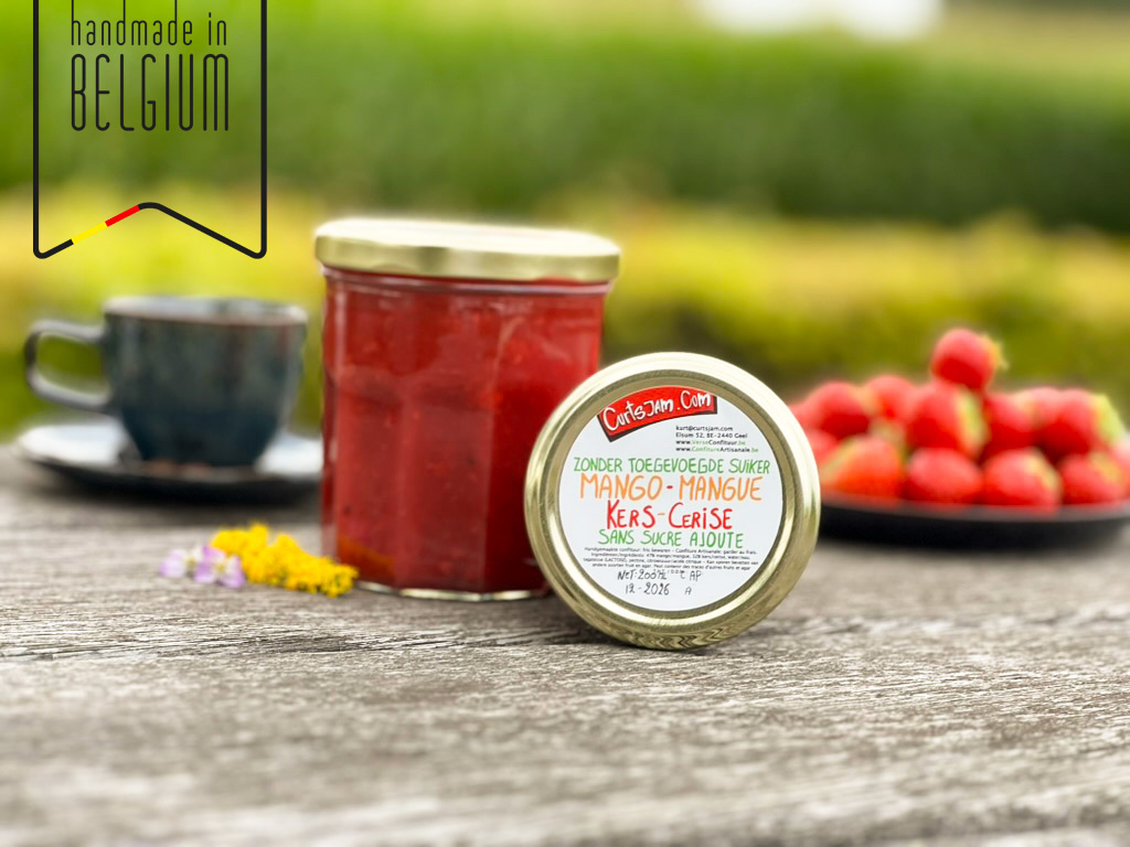 47 % Mango, 32 % Kirsche, Wasser, Tagatesse (Laktose), Pektin, Zitronensäure, Agar