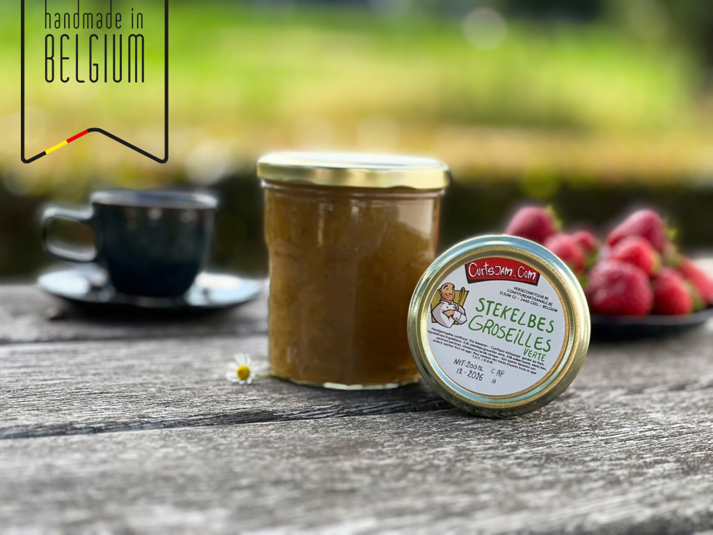 Stachelbeere (53 %), Zucker (31 %), Wasser, Pektin, Zitronensäure, Agar