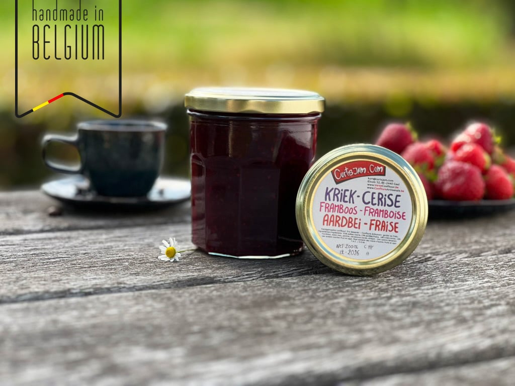 Sugar (31%), strawberry (23%), sour cherry (18%), raspberry (18%), water, pectin, citric acid