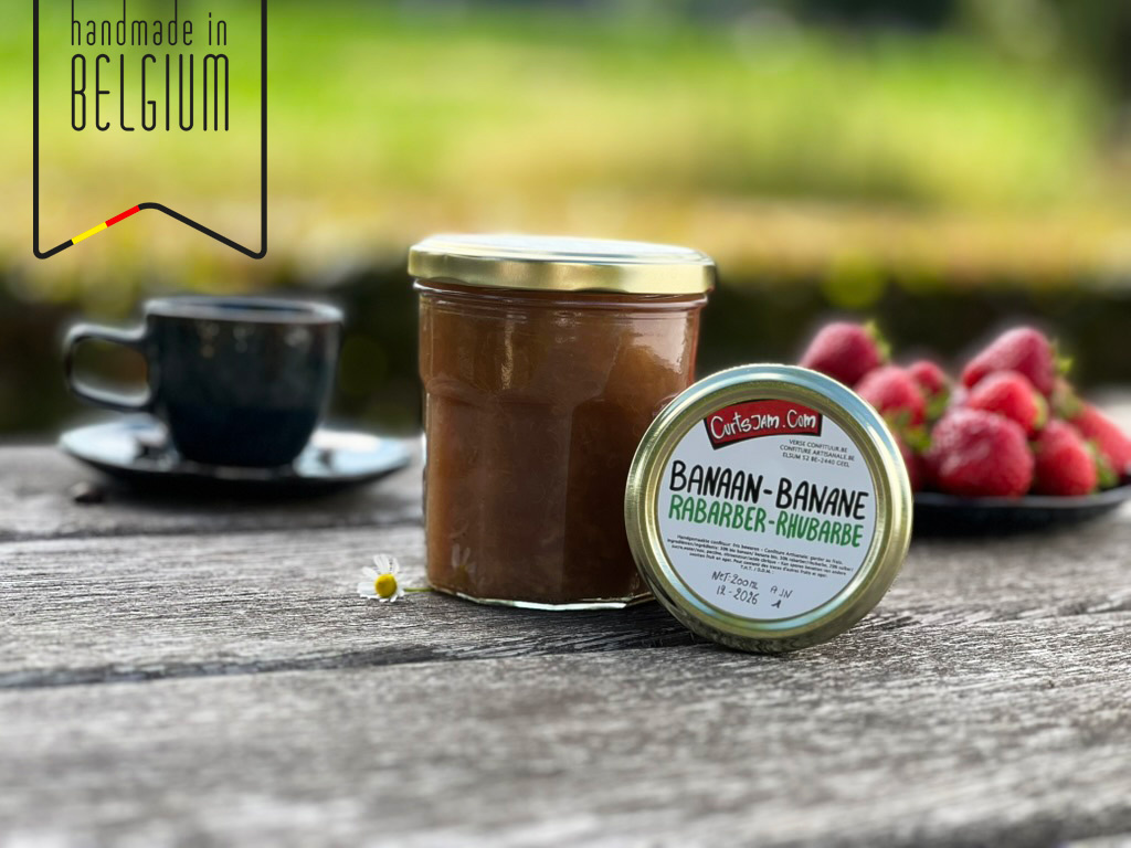 Banane (30%), rhubarbe (30%), sucre (29%), eau, pectine, acide citrique