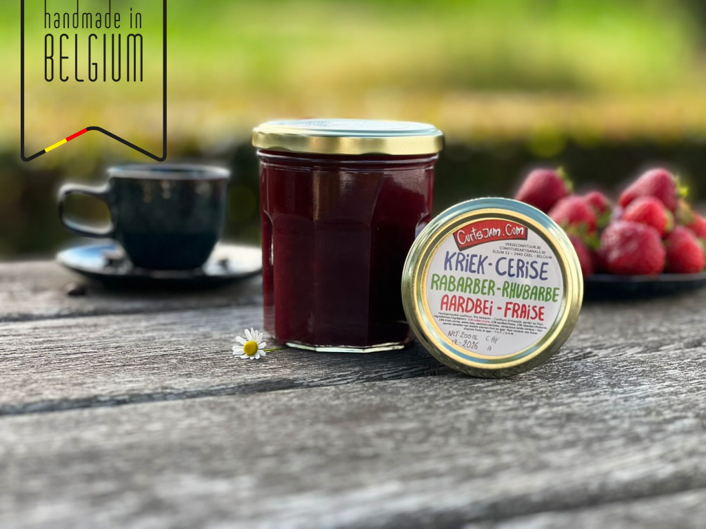 Aardbei (23%), rabarber (23%), kriek (18%), suiker (31%), water, pectine, citroenzuur